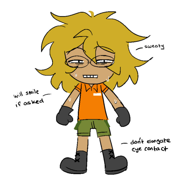 Mallory is a very frail and meek boy, but he can be very impulsive when prompted. He hates the school with every fiber in his body, and being the eldest son of the warden certainly doesn't help. Instead of attending a genuine school, Mallory receives his education from the cold and ruthless robotic teachers at the RRS. He knows nothing beyond the walls and great forest that surround the school, and he craves the day he finally gets to leave. He keeps himself occupied by writing down his fantasies in his diary, but with these fantasies come the ridiculous fears he has of the real world. He copes by making protective gear for whatever dangers he may come across, but even then, that isn't enough for him. He has a bad habit of chugging energy drinks until he throws up. This, of course, results in him having a tic where he twitches his head and eyes. Most of the students find him either uncomfortable to be around or irritating, making him quite unpopular. He is rightfully bullied by everyone else.