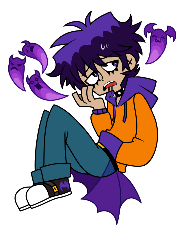 - Has horns underneath his hat (because he may or may not be a demonic entity in the form of a teenage boy)