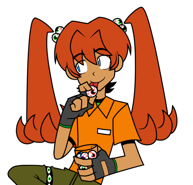 Gore is as wild and reckless as they come, but only on command. He hardly catches a wink of sleep because he's always being passed around as a source of entertainment or labor. Luckily, his friends will always go out and get him whenever he passes out from exhaustion. Gore does not understand emotions very well, so he finds it useful to read people's diaries to understand how others think and act. If he's not running, fighting, dumpster diving, or being an overall nuisance, he can be seen obsessively counting and labeling objects. It's difficult for him to count for long, and he'll start over as soon as he messes up. This, paired with his competitive nature, makes him pretty unpredictable.